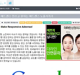 반응형 스킨 본문 우측 상단(PC) / 본문 상단(모바일) 애드센스 넣는 법 반응형 애드센스 안쓰고 애드센스 넣어보자! - 2 사실 애드센스 관련 강좌는 다른 블로그에서도 많이 다뤄지고 있는 것이라서 피하려고 했지만, 여쭤보시는 분들이 많아서 한 2~3편 정도로 계속 쓰게 될 것 같습니다. 우선 오늘은 제 블로그에서 사용중인 본문 상단 우측 광고의 삽입에 대해 알아보도록 합시다. 물론 반응형이라는 전제 하에서 쓰는 것이고, 구글에서는 모바일 상단에 큰 직사각형의 광고를 허용하지 않고 있으므로 반응형 디자인에서 모바일의 경우 이 큰 광고를 배제시킬 방법도 강구해야 합니다. 아래 스크린샷을 보고 시작합시다. PC(336 * 280px) Mobile(200 * 200px) 시작하기 전에 저번 강좌를 한번 보고 오시는 것도 도움이 될 것입니다. 저번 강좌에서 추가적인 내용만을 다룰 것이.. 더보기 이전 1 ··· 63 64 65 66 67 68 69 ··· 229 다음
