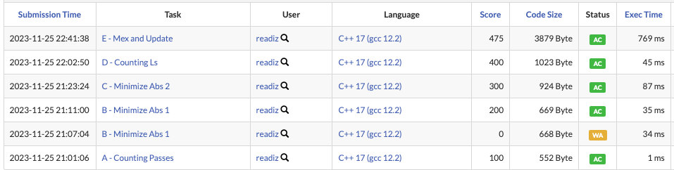 AC๊ฐ ๋์๋๋ฐ 1๋ถ ๋ฆ์ด์ ์ ์ถ์ ๋ชปํ๋ค. mex ์ฐ์ฐ์ ์ผ์ข